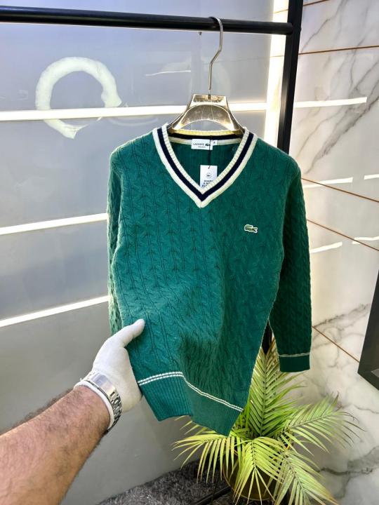 Home Premium sweatshirts Lacost e Green Imported knitted V Neck Super Premium Pullovers F3349-GR